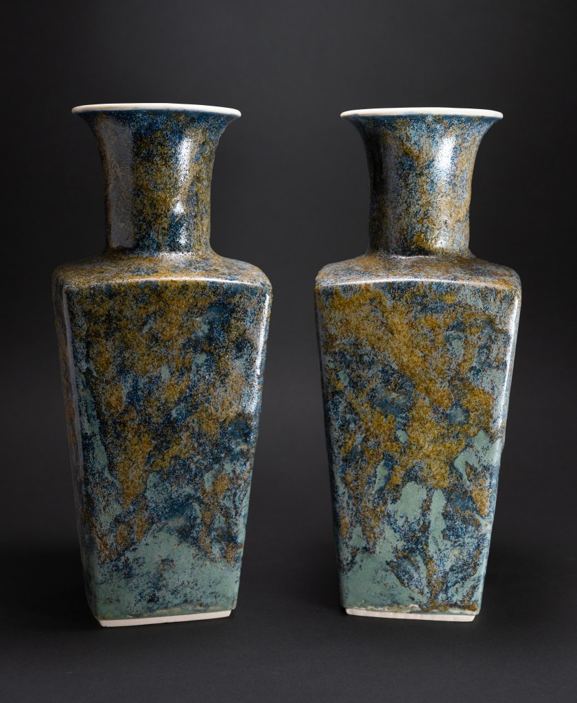 Vintage casting molds. Artist made casting slip & glazes. Poured, finished and fired by the artist.